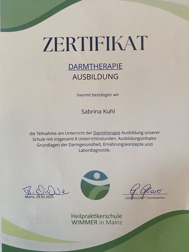 - Zertifizierte Darmtherapeutin